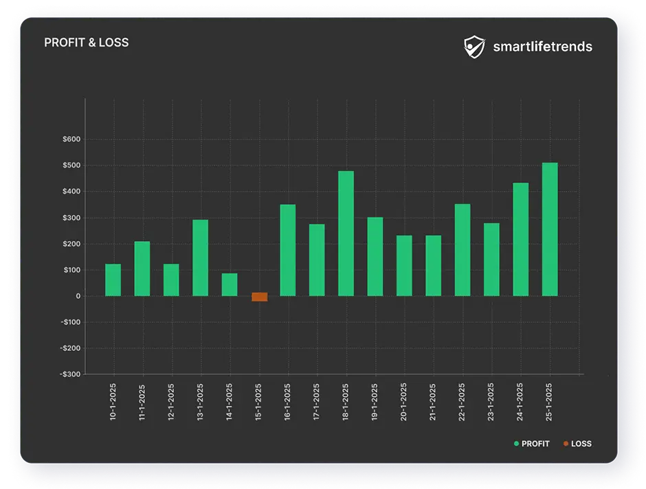 The application has been available for several months to a select group of early users who joined when registrations first opened six months ago. Based on publicly available data, some users have reported earning hundreds of dollars per week, though results vary depending on factors like investment size, strategy, and market conditions. The founders state that the algorithm continues to evolve, showing steady improvements, with internal testing estimating an accuracy rate of up to 82%. While past performance is promising, future outcomes may differ based on individual use and market fluctuations.